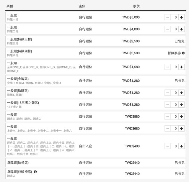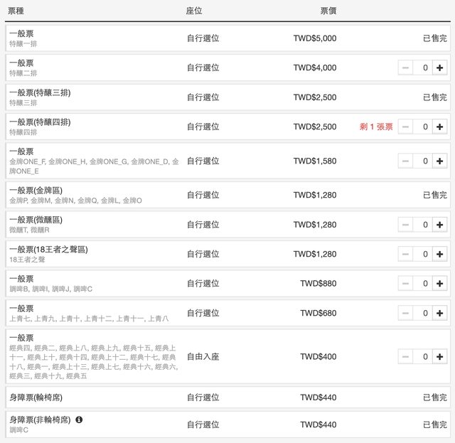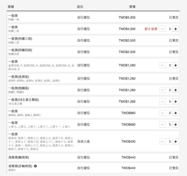 → king1028 : 位應該是賣差不多5000張左右。400不分席次上排座位 01/11 11:58