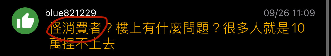 推 blue821229 : 怪消費者?樓上有什麼問題?很多人就是10萬捏不上去 09/26 11:09