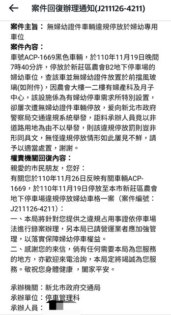 → ccc101419 : 第二次申訴市長信箱已經是新北市交通局停管科回復 10/03 19:06