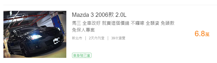 推 zark07222 : 開低端舊款馬自達,這破車很多低端台客很愛 10/05 17:36