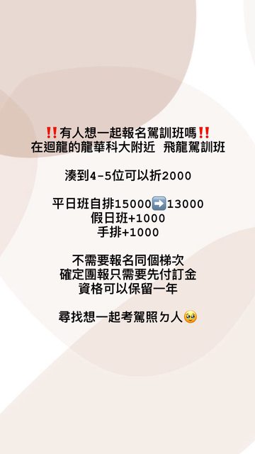 標題[討論] [揪團]迴龍 飛龍駕訓班