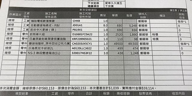 不過還好中部日產原廠裕唐整新品費用還好,沒有比外場貴太多,就直接原廠處裡。