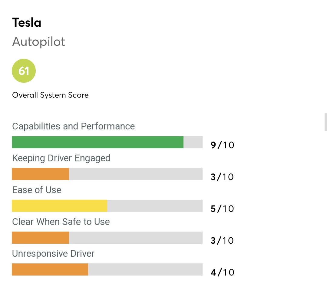推 stock5566 : 連續三年給特斯拉低分原因:不能確定駕駛有沒有睡 10/30 21:02