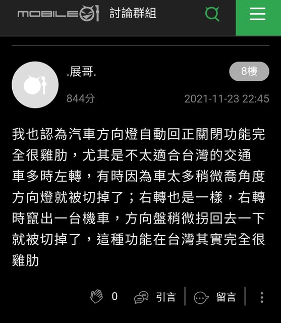 → PPAPwww : 回位,一個轉彎要壓兩次方向燈,不好用 11/05 11:05