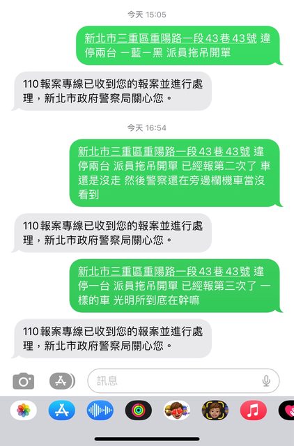 : 的簡訊報案 最後車子還是在那裡 我還特別挑假日下午比較悠閒的時間檢舉,一樣不來