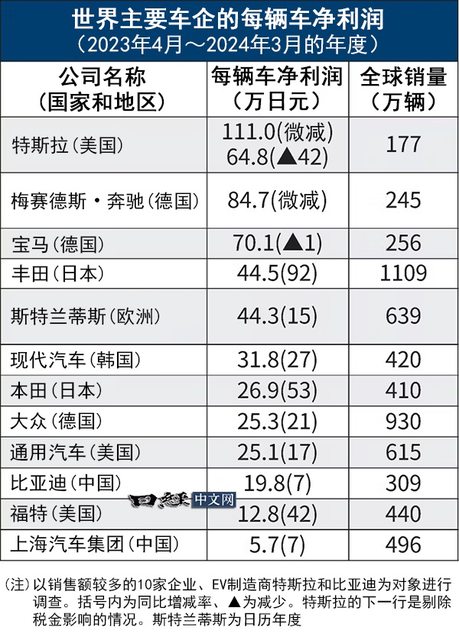 特斯拉賣一輛賺111萬日元,BYD……