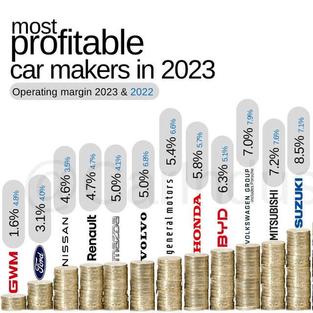 量,並未披露季度利潤的歐洲斯特蘭蒂斯(Stellantis)採用2023日曆年度的數據。