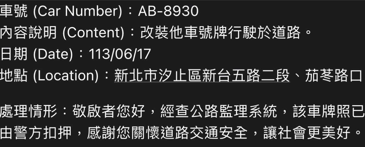 推 kenjustice: 都知道假牌了 難道都不處理的嗎? 07/03 16:19