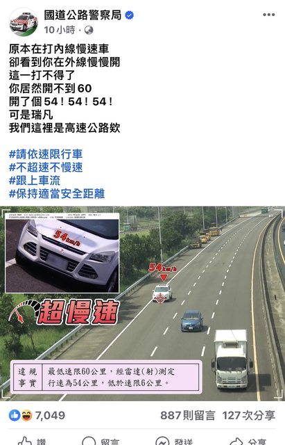 推 kiopl: 我覺得高速公路罰單先三倍 比較跟的上經濟發展 違規有減少07/04 16:33