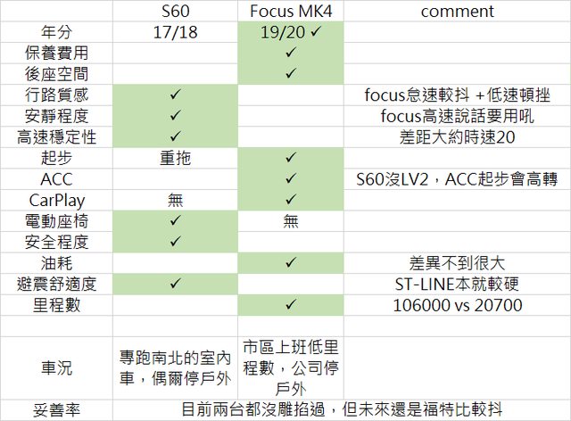 → mktg: 反之留S60,趁focus年份新里程低先出掉,S60開到換新車報廢 07/11 09:53