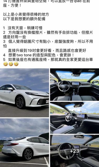→ dick929: Camry真的不用太廣告,豐田神主牌欸 07/11 14:06