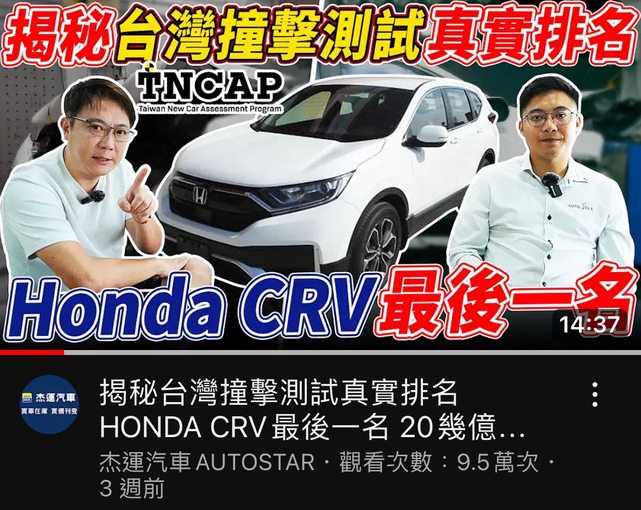 推 mooma: 你看上一代CRV撞蠍子車的影片,出乎意料的粗壯 08/02 14:34