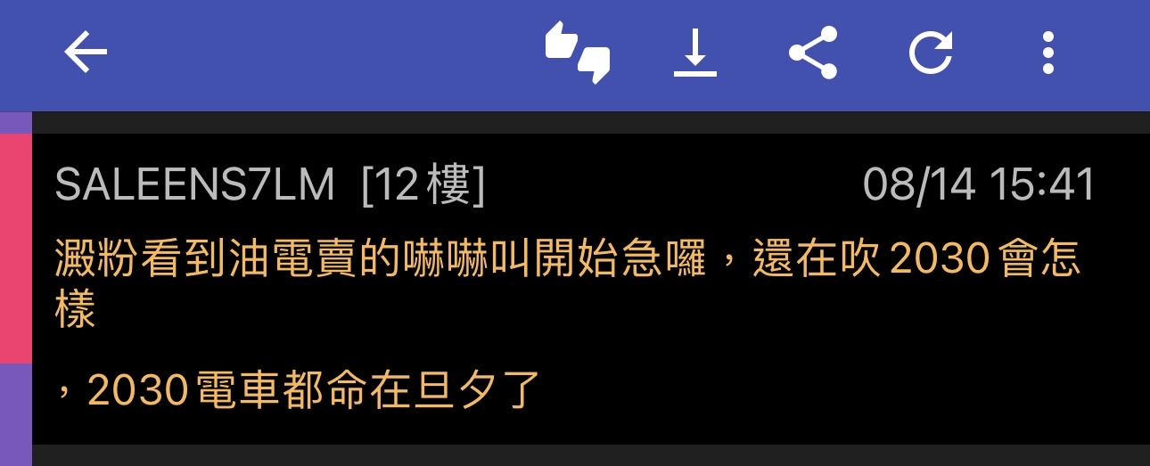 推 SALEENS7LM: 搞電車泡沫放掉ICE市場不是明智之舉,福特需要重新振 08/14 17:37