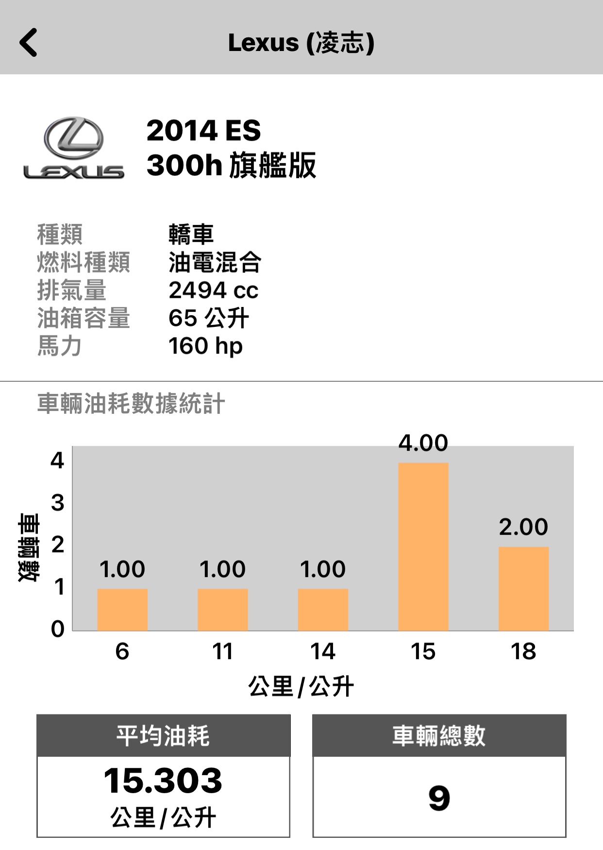 推 y2o3: 2014年ES300H的真實油耗並沒有16~18 08/15 17:05
