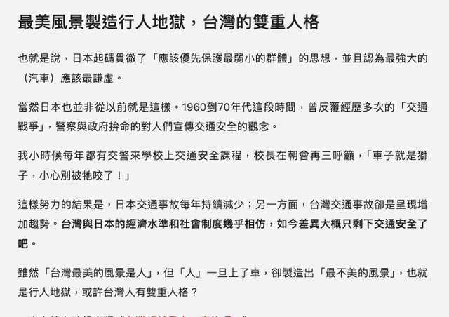 → DongHao: 教育重點日本著重在駕駛,台灣著重在行人 08/15 13:34