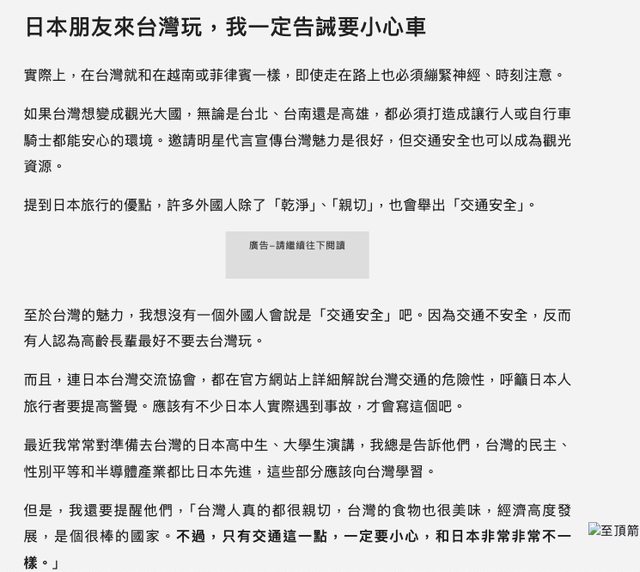 → GOPOL: 之前我日本朋友來台灣玩 就跟我說過 你們台灣交通很恐怖 08/15 13:45