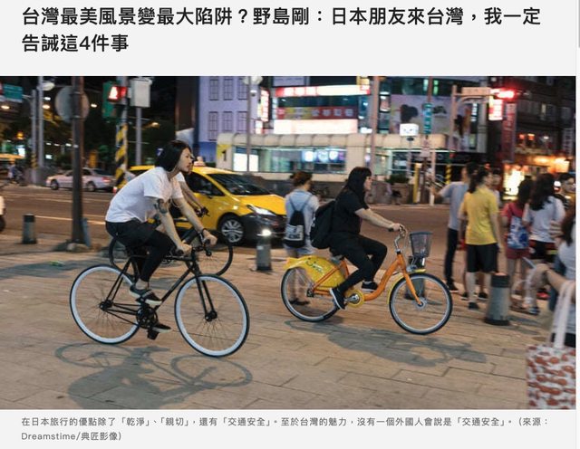 → yai5217: 日本人在日本騎腳踏車也是橫衝直撞 來台灣難怪怕被撞 08/15 12:00