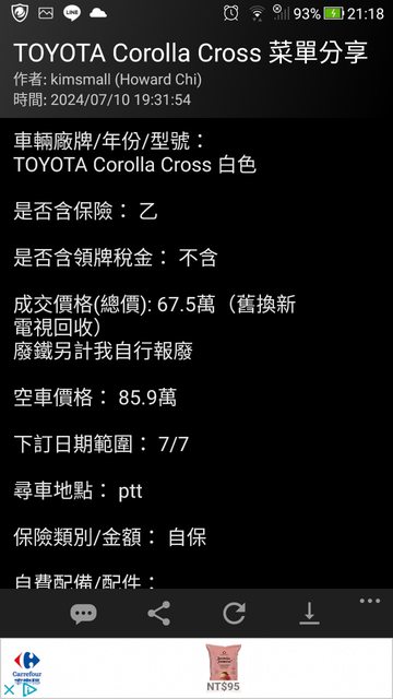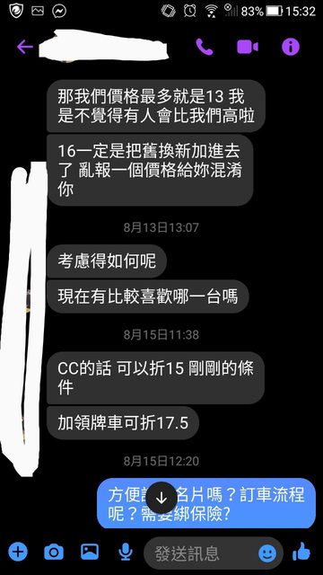 → laechan: 我一開始談尊爵油車精裝套裝時拿到的價格是88萬 08/23 16:25