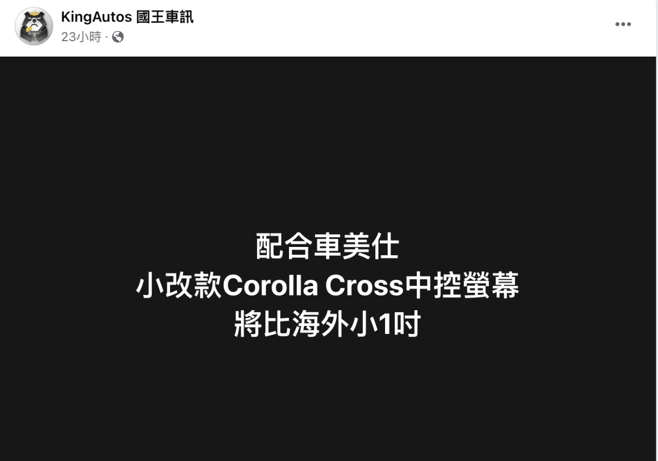 推 Formalin: 小改款Corolla Cross螢幕變小 合理嗎 09/02 18:39