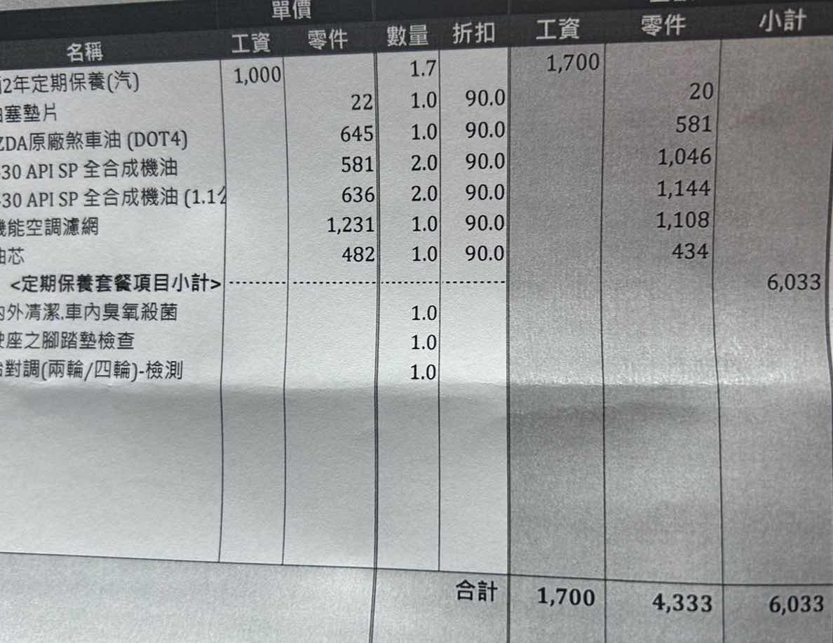 推 SMOOTH5528: 空濾其實自己換就行,有點貴,這是我中保養的價格 09/07 22:58