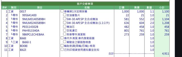 : 如列表 換油 一些清潔 濾網 工資