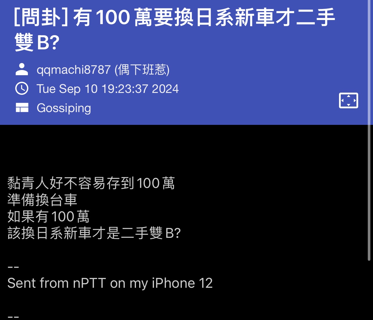 推 j32072: 1百萬買雙b 算了吧你選日系是對的 09/11 09:46