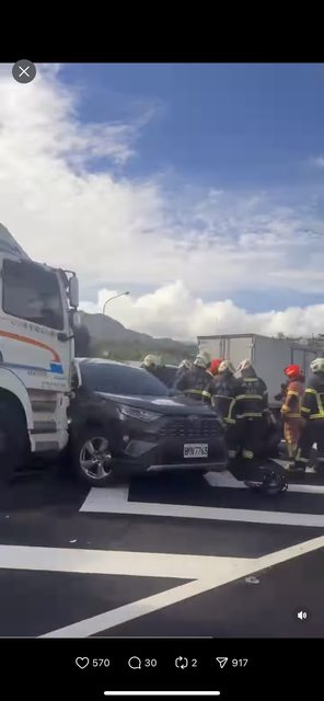 推 dick929: 從照片可以看到槽車是開在外側車道,所以被撞的車輛都是 09/14 21:14