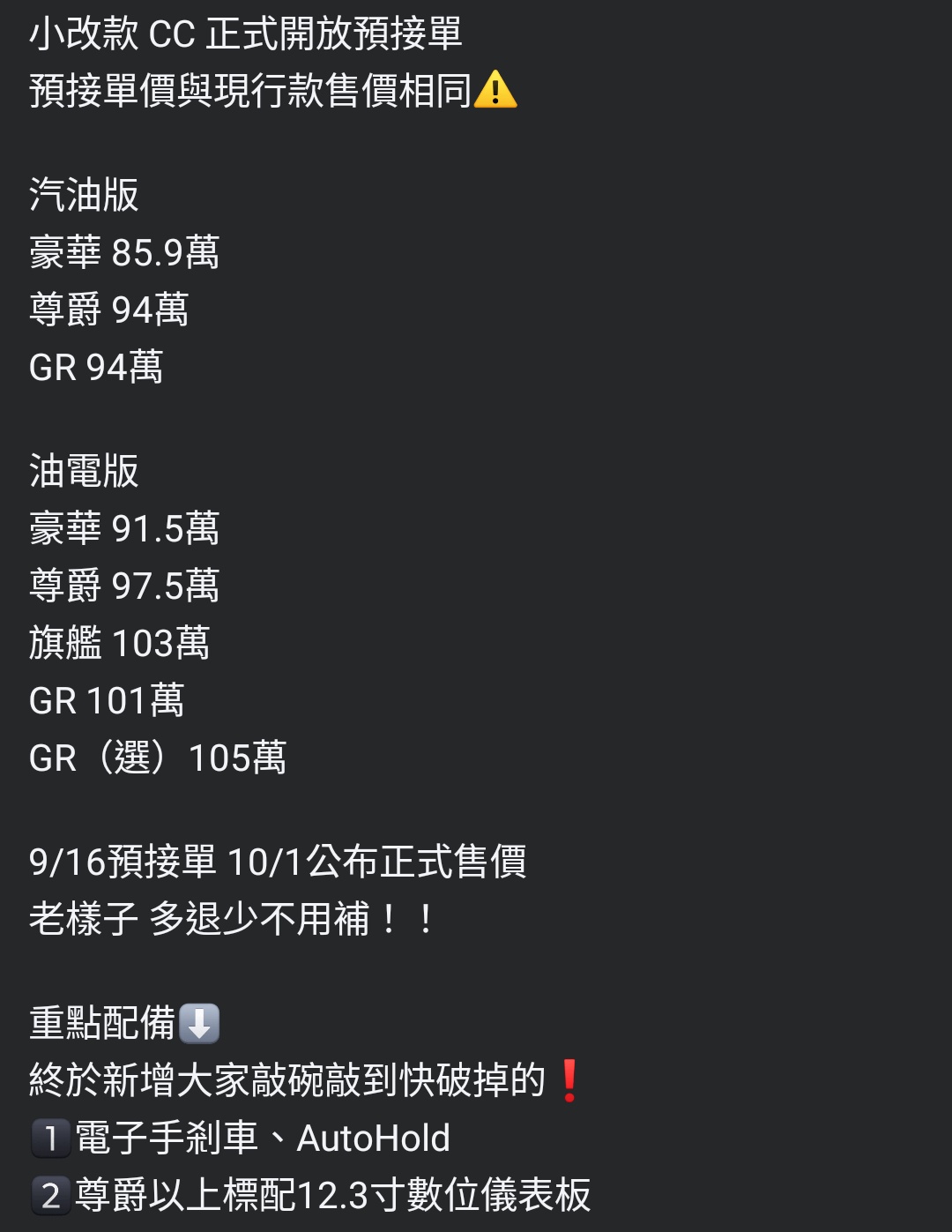 → a38654: 改款cc有業務流出重點規格了 09/16 17:39