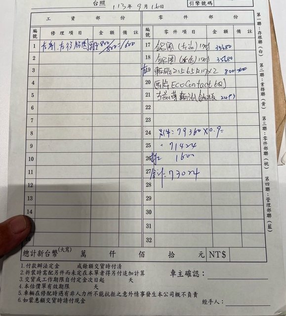 : 然後還跟我說左前輪弧飾板沒有算!! 2,493