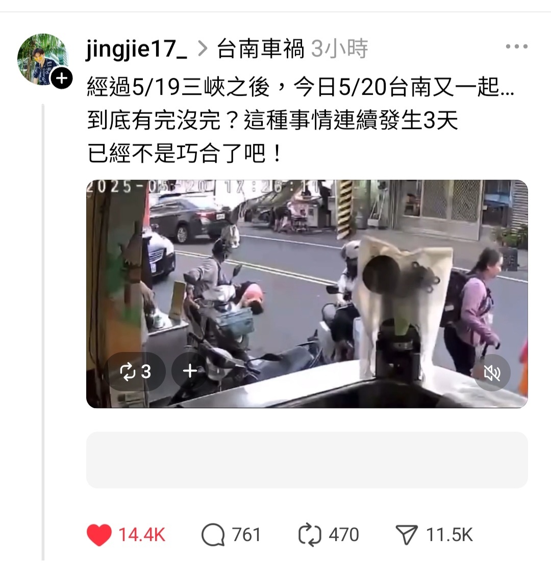 → KaYan: 這不就台灣日常是要討論什麼 第一天車禍? 05/21 11:16