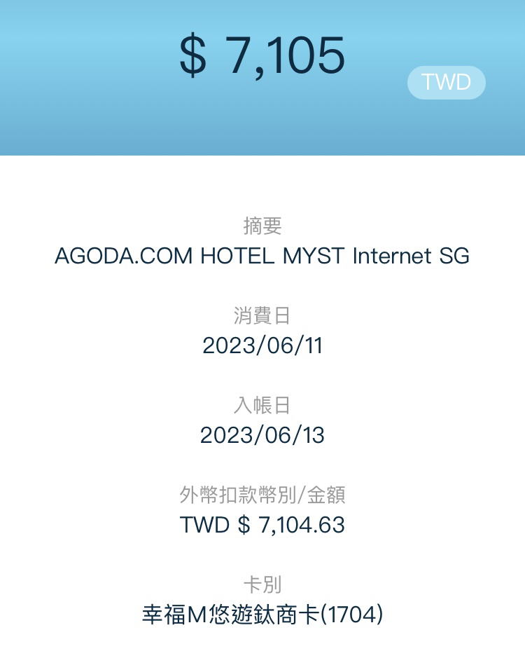 → meichyun : 單顯示外幣扣款,但幣別是台幣,有收國外手續費, 09/06 09:40