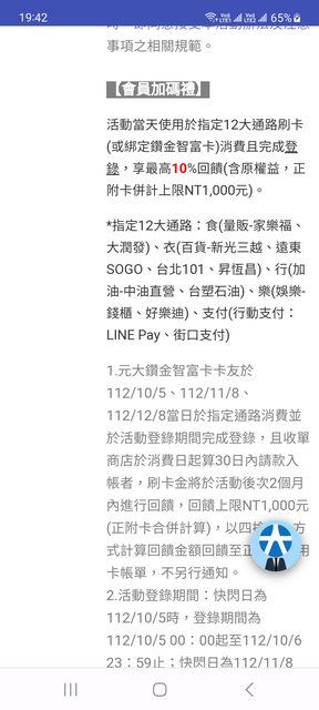 → operatorm : 元大這檔綁TP刷也只有基本%,加碼%全槓 09/23 14:58
