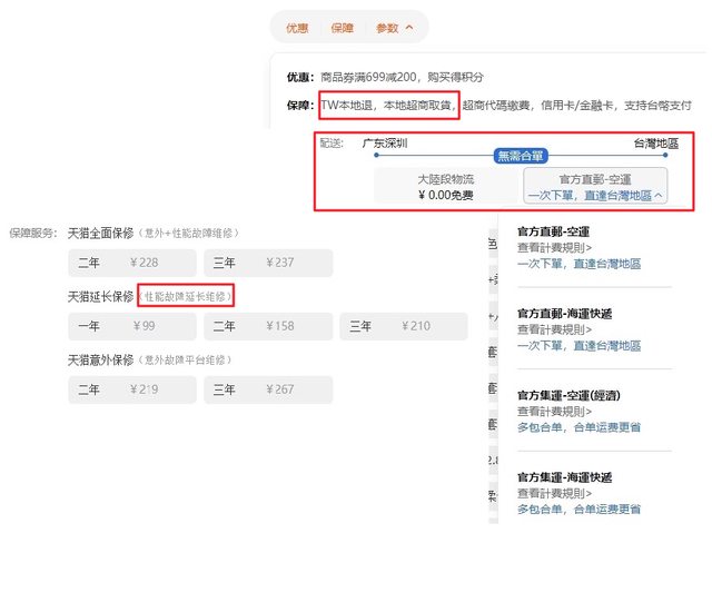 有物流直送/本地超商退貨/天貓保固延長/台幣付款..等