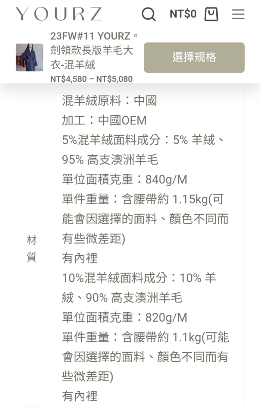 → lernshin: 混羊絨的羊毛有寫澳洲羊毛耶 1.169.104.94 10/31 15:35