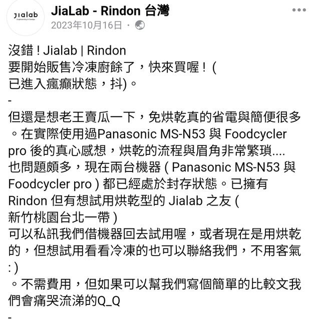 → error987: 我個人使用上都是廚餘當天烘乾,不覺得 220.134.2.216 11/04 17:41