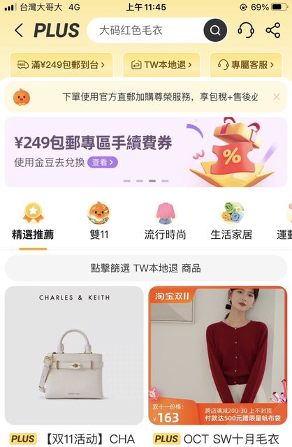 滑到一個plus專區,滿249人民幣可以包郵就點進去了