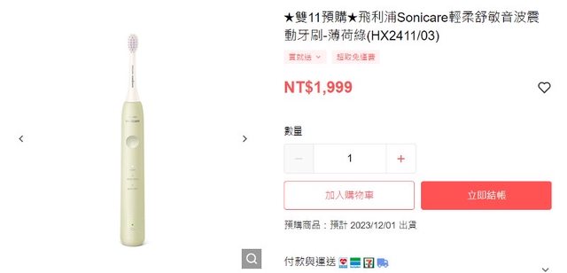 推 guua70927: 我買飛利浦hx7533單隻的$2688折扣完約118.169.153.186 11/11 23:17