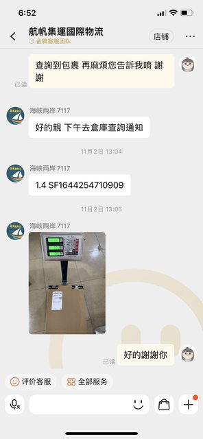第一次用私人集運比較緊張,收到淘寶通知送達立馬去告訴掌櫃,沒多久就得到秤重認證照