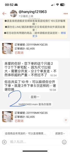 → yoling07: 單,再由賣家分成好幾個包裹出貨,蝦皮 39.10.34.241 11/19 12:51