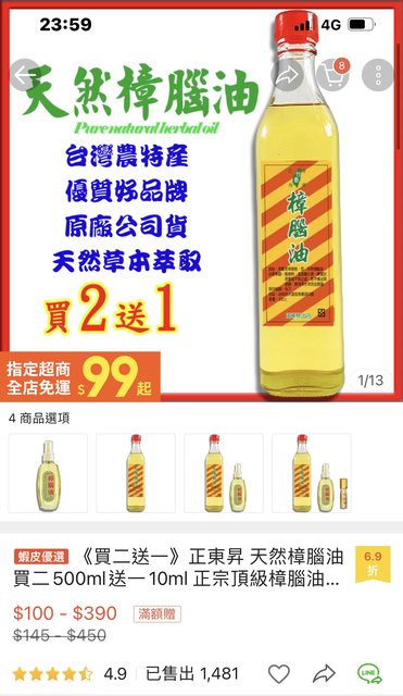 → shcnku: 前有在這間賣場買過樟腦油,買來之後發現 49.215.58.153 11/22 23:26