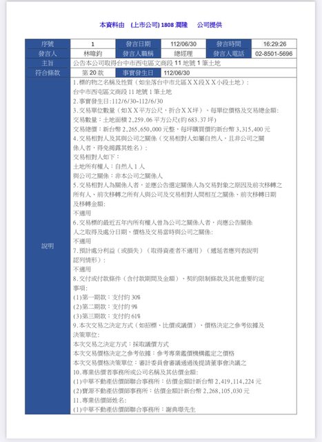 推 piolet: 發哥在七期水湳都當了單價地王07/01 00:34