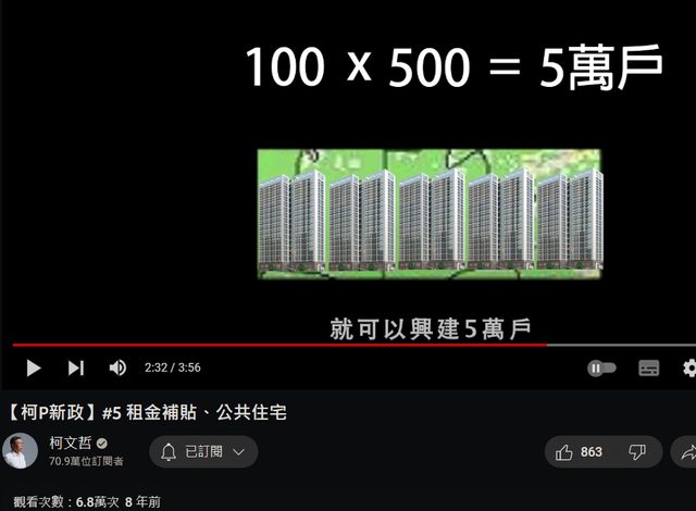 : 靠以後的市長繼續做下去,「要對房價造成破壞,必須要蓋到5萬戶才有辦法」。