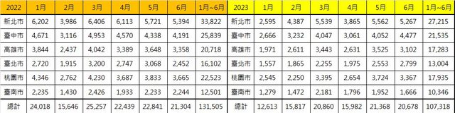 2023年六都買賣移轉棟數出爐