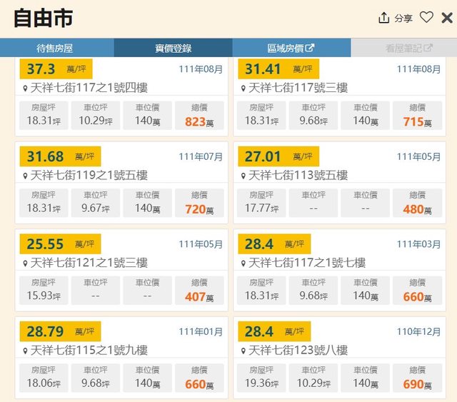 本物件附近地址實價登錄 :