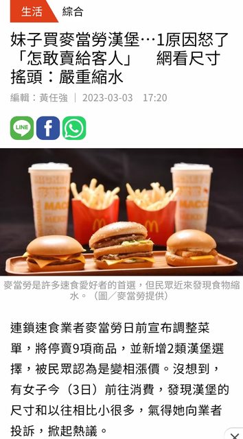 麥當勞(漢堡變更小 價格卻變得往上漲)