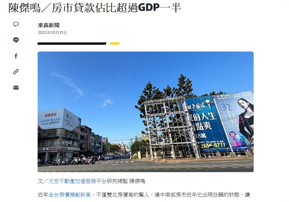 → toon885: 始泡沫化了。應該要看貸款總額和比例,台灣越貸越多 07/17 22:36