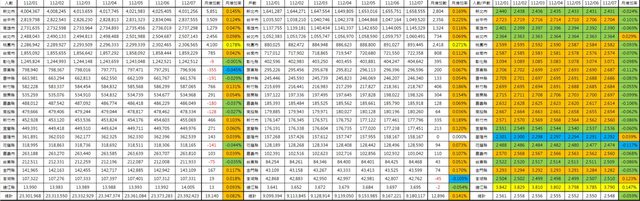 11. 高雄市:+1,279(+0.047%)