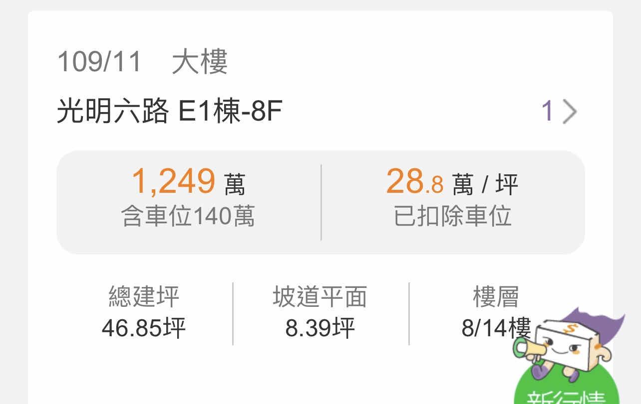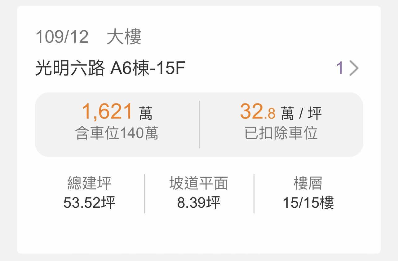 推 xephon: 100筆60萬,3筆65萬,就是房價井噴請加價 09/07 07:13