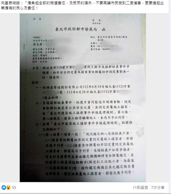 javabird: 頂多拿違建等理由少賠一些些,但主要責任跑不掉的. 09/08 12:36