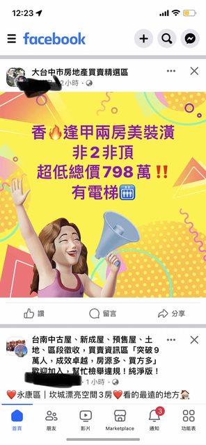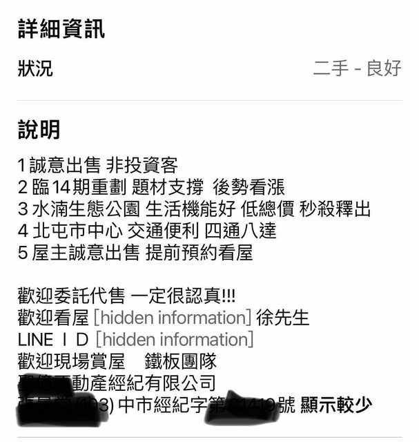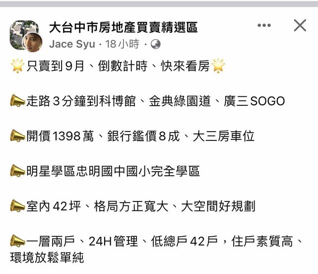applebob: 臉書台中房仲一堆資訊都不寫清楚 09/09 12:05